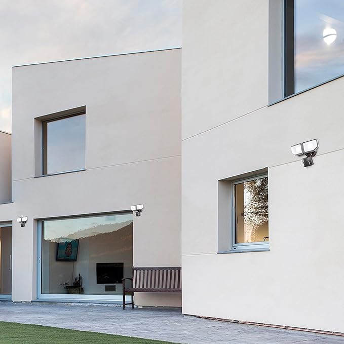 - STURDY ALUMINUM DESIGN: The extremely sturdy aluminum housing can withstand stormy weather, making this LED outdoor motion sensor light great for use in the front door, driveway, walkway, side of the house, yard, porch, garage, backyard, patio, and fence.