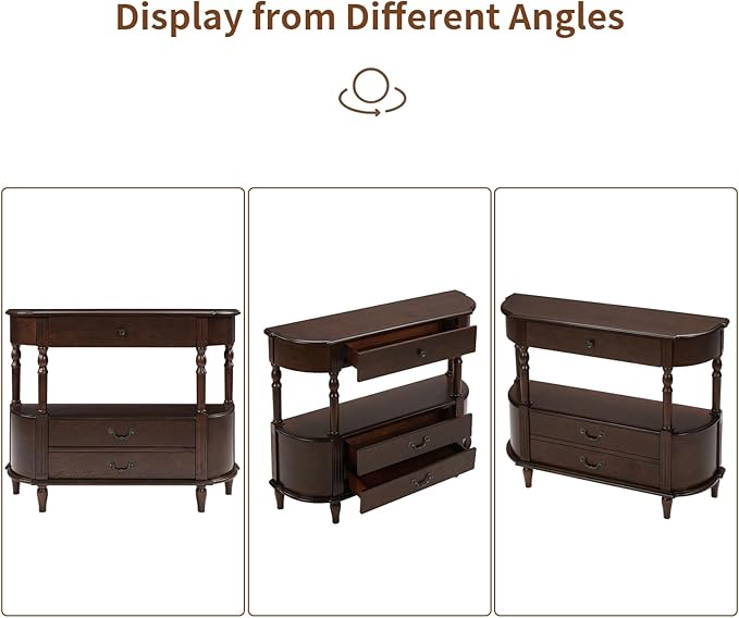 - Easy Assembly: This curved sofa table is very easy to install.Its 3 drawers are pre-assembled,when you receive your package,you just need to assemble 4 legs to use this console table.If you have any questions,please let us know,we are more than willing to help you.