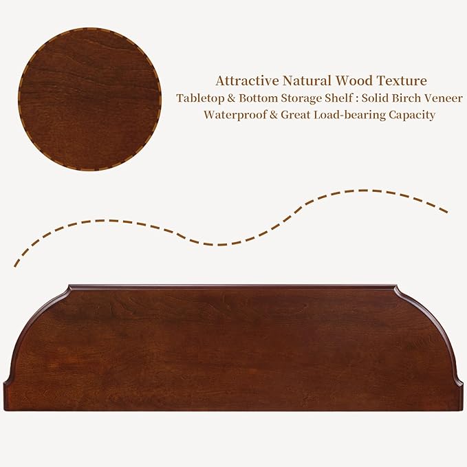- Excellent Structure: Produced in Vietnam,this half-moon console table has a sturdy construction.The drawer frames and table legs are made of solid pine wood.The tabletop and shelf are veneered with birch wood. Exceptional Load Capacity: Table Top: 330 lbs; Lower Shelf: 110 lbs; Single Upper Drawer: 17.63 lbs; Single Lower Drawer: 33 lbs, ensuring outstanding stability.