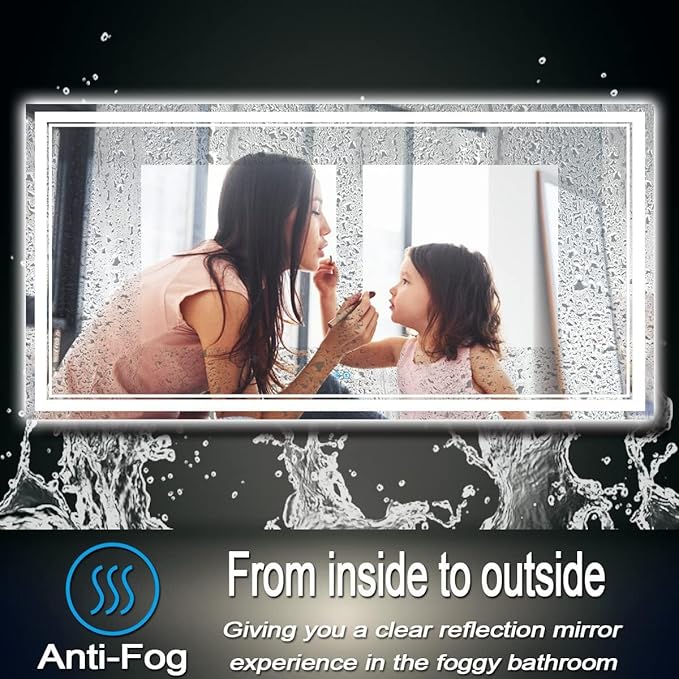 - 😎【TOP QUALITY & LONG ENDURANCE】T5.0MM Copper Free Eco-friendly Glass mirror, which is good for protecting you and environment.Aluminum alloy material back support and Fully enclosed backplate design, that prevent fog from entering the circuit of the mirror.Energy efficient LED light strip,excellent illumination and low consuming energy,efficient LED light strip bring high quality and durable use experience. The mirror has a memory function. When the power is turned off and then restarted, it will return to the previous state of use.