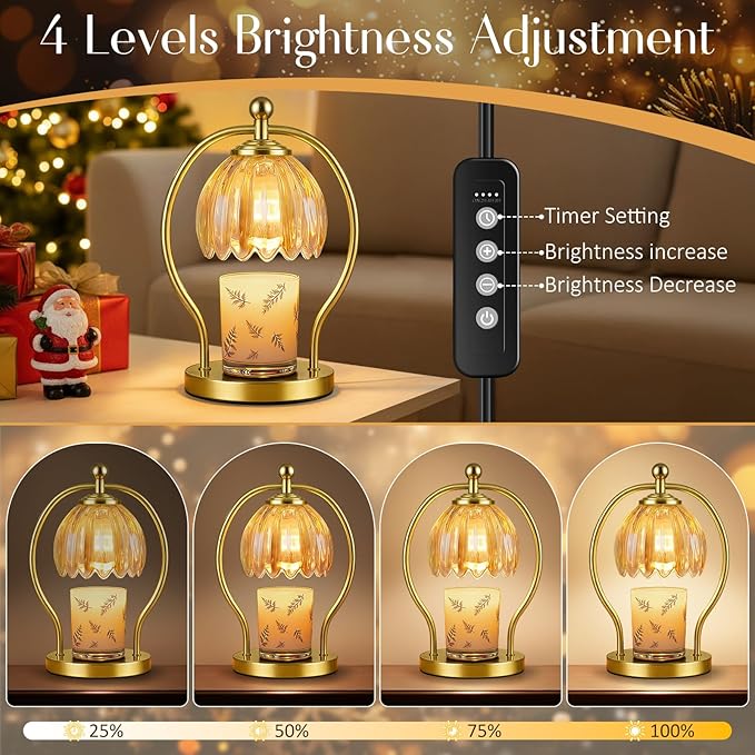 - 【Timers & Scent Control 】Our candle warmer lamp with timer skipped the overly long timers— 1H/2H/4H settings are perfect for daily use (no unnecessary energy drain). Plus 4 brightness levels: dial in the perfect scent strength for whatever mood you’re in .