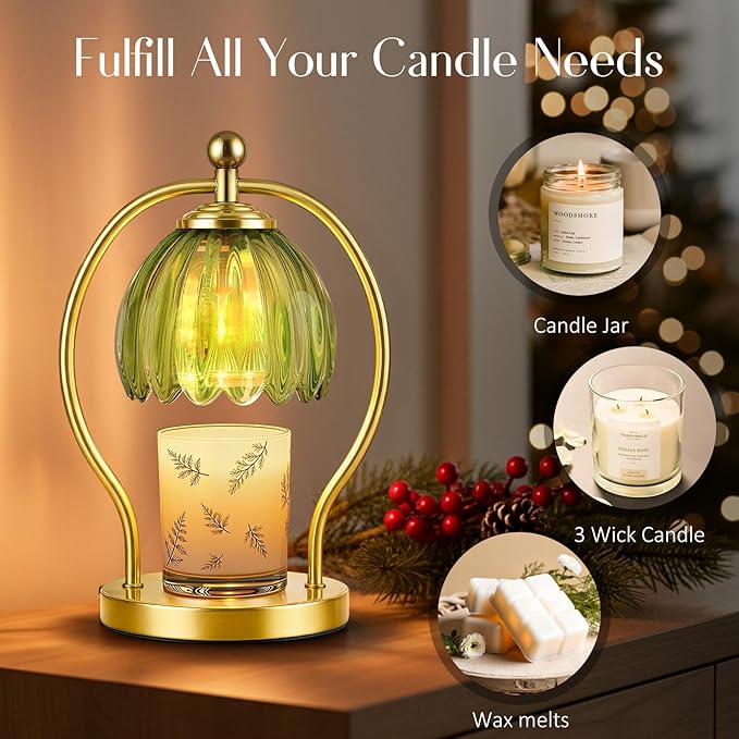 COTTHOS Candle Warmer Lamp, Dimmable Candle Warmer with Timer, Vintage Candles Wax Warmers for Jar Candles Christmas Birthday Gifts for Women Mom, Home Decor for Bedroom Living Room, Gold Green