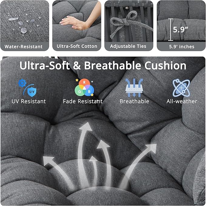 - 【Strong Powder-Coated Frame】 The steel frame of the 2 person egg chair outdoor is powder-coated for extra strength and durability, supporting up to 680 lbs. It stands up to sun and rain, season after season.