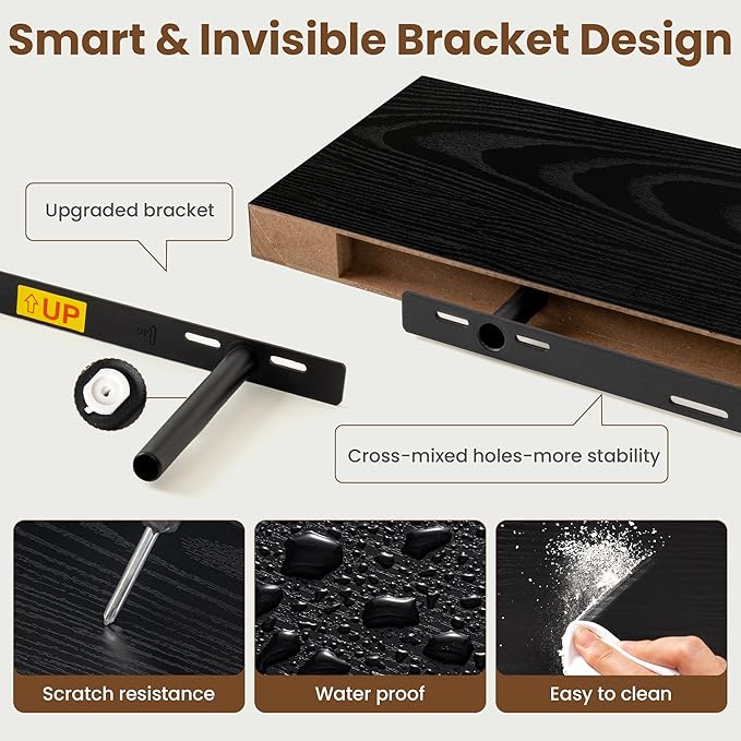 - Easy & Secure Installation: The wooden floating shelves with stainless-steel invisible brackets, screws, anchors, and a magnetic level, installation is simple and quick. Follow the included instructions to mount securely in under 5 minutes.