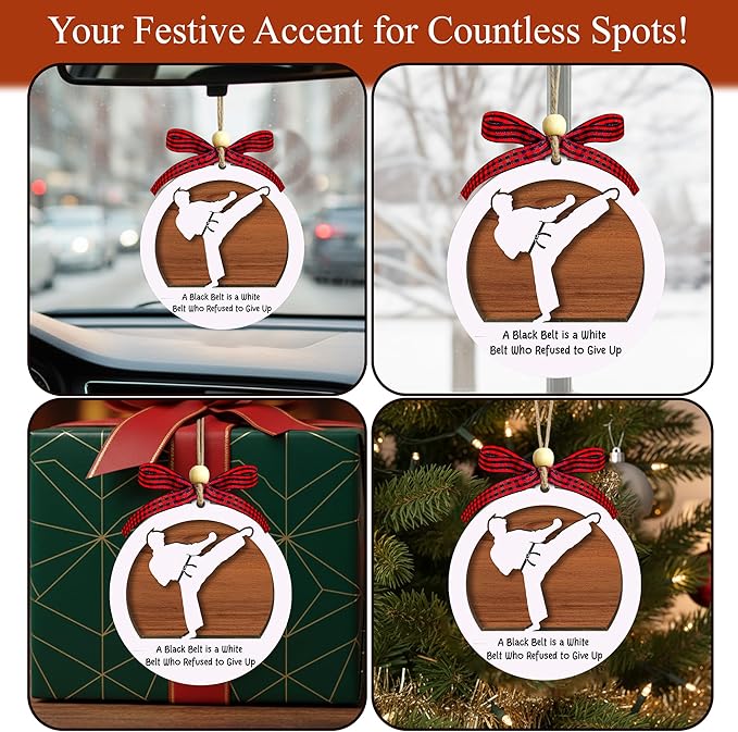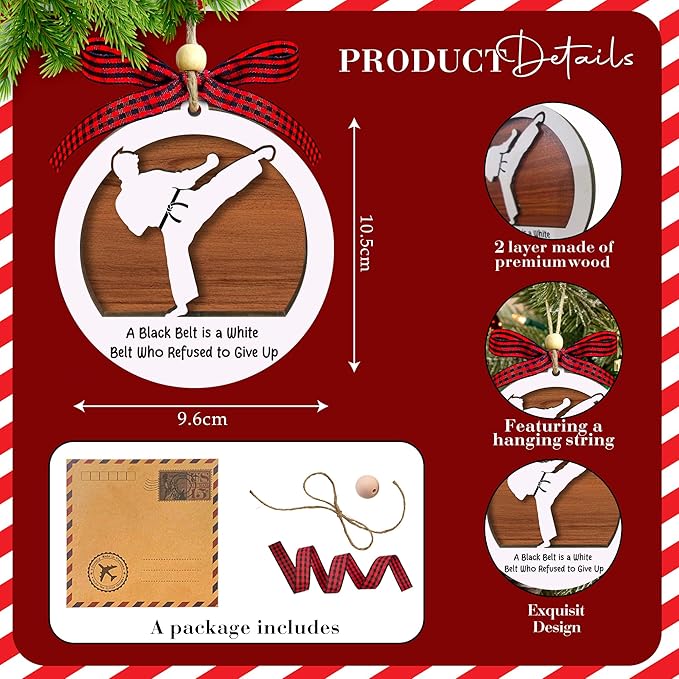 - Eco-Friendly Wooden Craftsmanship – Crafted from 2 layers of sustainable wood, this Karate ornament measures 4.1 inches with a total thickness of 6mm, ensuring durability and a rustic charm. Perfect as Karate Christmas Tree Hanging Decor, it’s a meaningful gift for martial artists, karate students, instructors, or sports lovers, making it ideal for holiday décor or year-round display