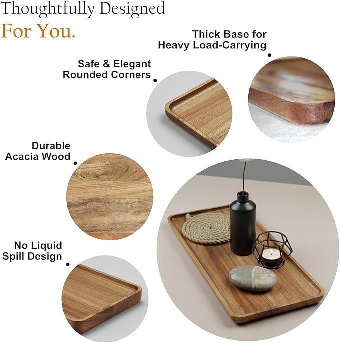 - HIGH QUALITY: These wooden trays are very carefully crafted with smooth edges and a beautiful finish. These serving platters sit flat on the table and donβt rock. Its high-depth design ensures no liquid spill. It's a great gifting option for your loved ones.