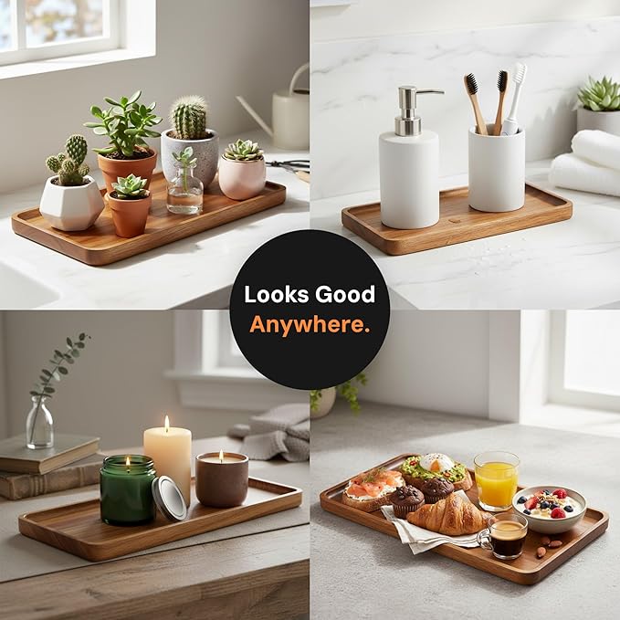 - RUSTIC WOODEN DECOR: These wood serving trays are natural-looking and versatile. They can be used for serving food, a charcuterie board, or as lovely home decor.