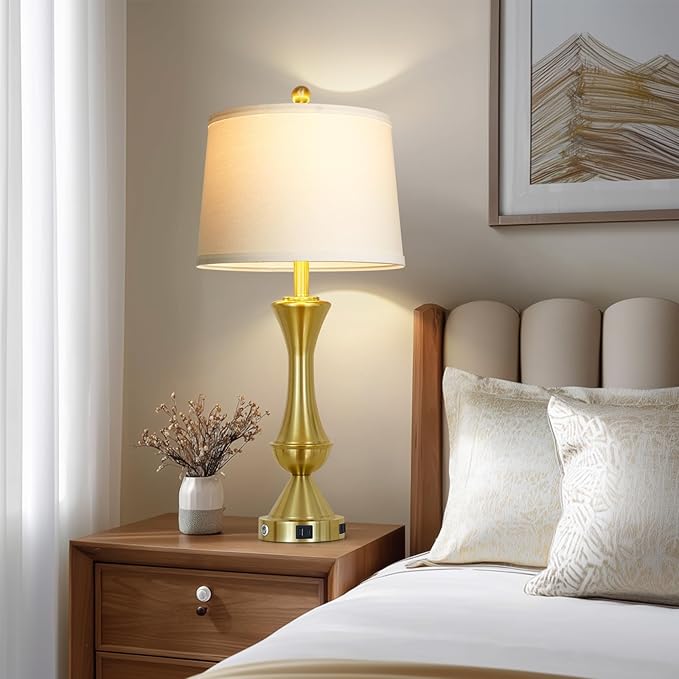 - 【Easy Assembly and Stylish Gift】 Assemble your gold bedroom lamps in minutes with no tools required. Simply attach the shades and enjoy the elegant glow. These lamps make a chic gift for friends and family, adding a modern touch to any home decor