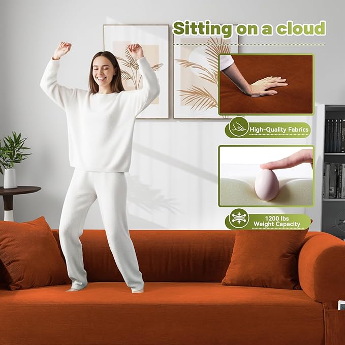 - 【3-IN-1CONVERTIBLE COUCH BED】-Wrapped in breathable small-streak corduroy fabric and filled with high-density foam, this boneless sofa couch offers exceptional pressure relief and firm support. Soft cylindrical pillows complete the experience for ultimate relaxation.