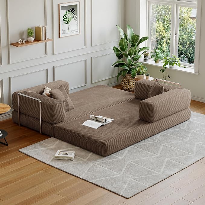 78.8''Convertible Sleeper Sofa Bed,Compressed Floor Boneless Couch,Modular Modern Corduroy Sofa for Living Room Bedroom -with Fixed-Shape Frame and Support Armrest,Easy Assembly(Brown)