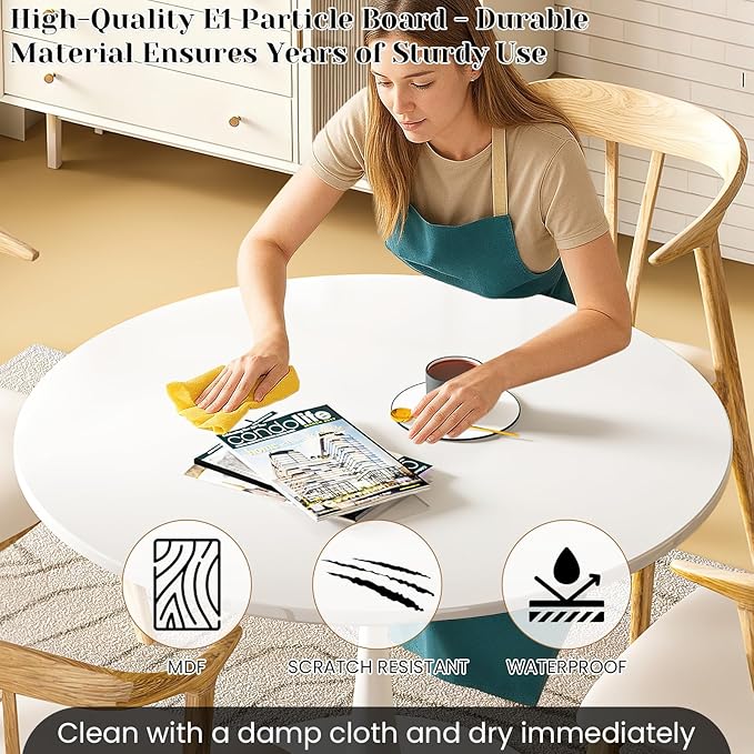 - 【Sturdy and Durable】: This round table kitchen is made of high-quality MDF tabletop, small dining room table can support 220Ibs, circle dining table provides a sturdy and durable experience. The round dining table pedestal weight secures your mesa redonda de comedor to any floor without taking up your legroom at the same time.