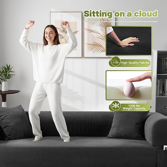- 【3-IN-1CONVERTIBLE COUCH BED】-Wrapped in breathable small-streak corduroy fabric and filled with high-density foam, this boneless sofa couch offers exceptional pressure relief and firm support. Soft cylindrical pillows complete the experience for ultimate relaxation.