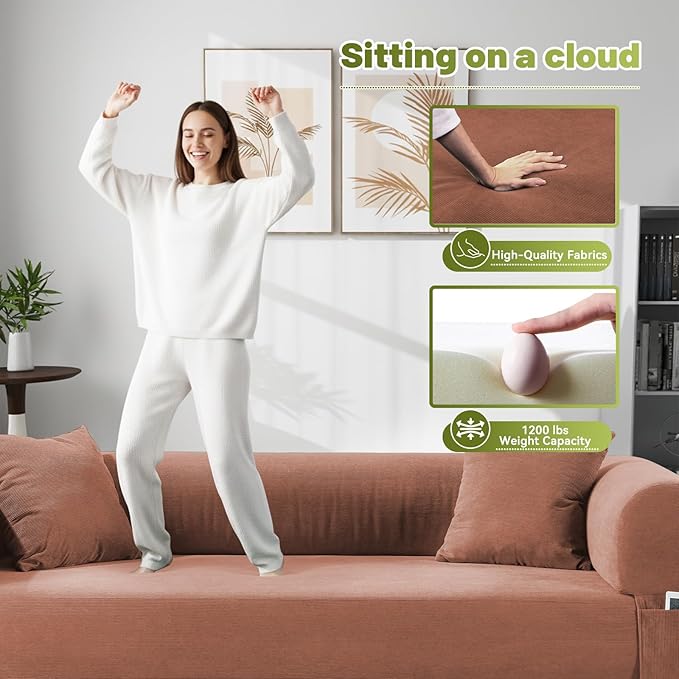 - 【3-IN-1CONVERTIBLE COUCH BED】-Wrapped in breathable small-streak corduroy fabric and filled with high-density foam, this boneless sofa couch offers exceptional pressure relief and firm support. Soft cylindrical pillows complete the experience for ultimate relaxation.
