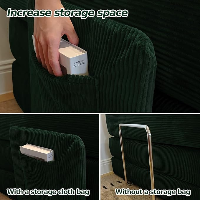78.8''Convertible Sleeper Sofa Bed,Compressed Floor Boneless Couch,Modular Modern Corduroy Sofa for Living Room Bedroom -with Fixed-Shape Frame and Support Armrest,Easy Assembly(Dark Green)