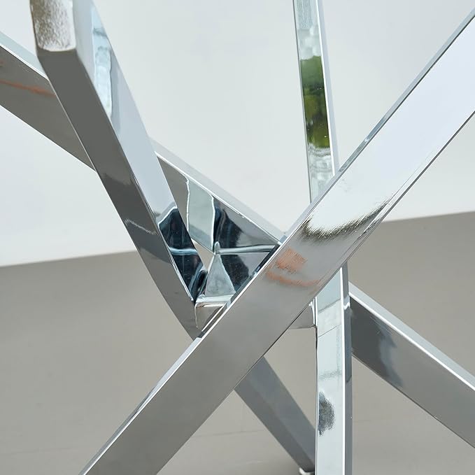36" Round Glass Dining Table Modern Kitchen Glass Top Table for 4 with Silver Chrome Metal Legs, Clear Dining Table Kitchen Table for Home Office Dining Room