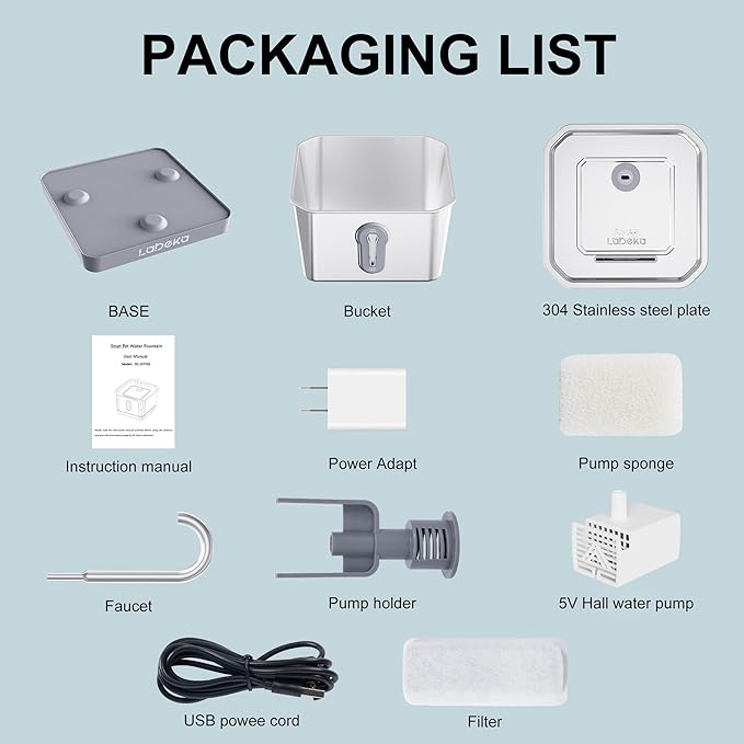 - 【304 Stainless Steel Build & Easy Water Monitoring】— Crafted with food-grade 304 stainless steel, the fountain is durable and supports high-temperature cleaning for maximum hygiene. The clear water level window allows instant checks without opening the lid—no more guesswork! (Note: Base is not washable.)