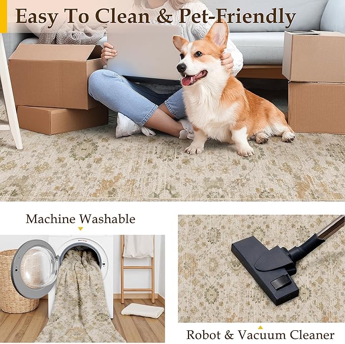 - Easy to Clean: The machine-washable design ensures effortless care. The low soft pile of the rug make it easy to remove of pet hair and other debris. It can be broom or rag cleaned for daily cleaning and is safe in the washing machine