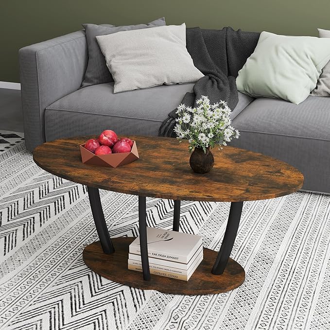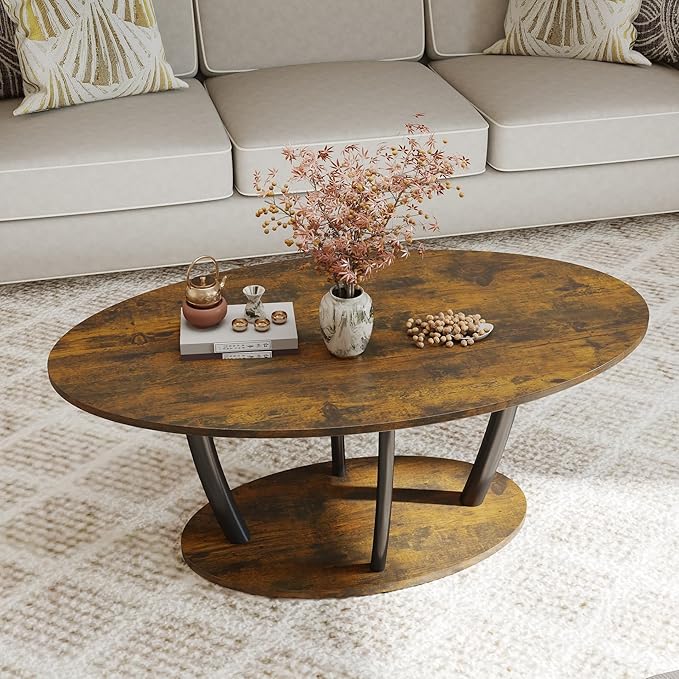 - 【Rustic & Retro Oval Design】 This small oval coffee table features a warm rustic wood finish that brings cozy, vintage charm to your living space. It also works perfectly as a tea table, fitting seamlessly into farmhouse, industrial, or modern retro interiors.
