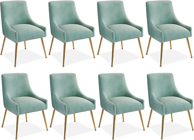 Dining Chairs, Accent Chairs Set of 8, Modern Upholstered Kitchen Dining Room Chairs with Gold Legs, Fabric Tufted Velvet Living Room Chairs for Reception Room Bedroom Guest Room (Green)