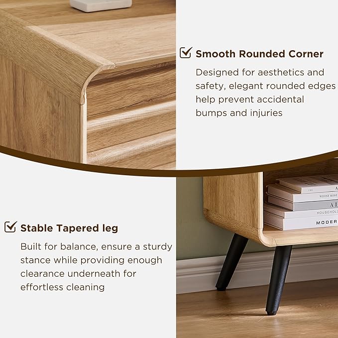 - 【Natural & Mid-Century Inspired Design】Bring organic elegance into your home with this unique slatted entryway table. Featuring fluted doors, curved sides, and tapered legs, it blends nature’s flow with a clean mid-century modern vibe—perfect for elevating your space with style.
