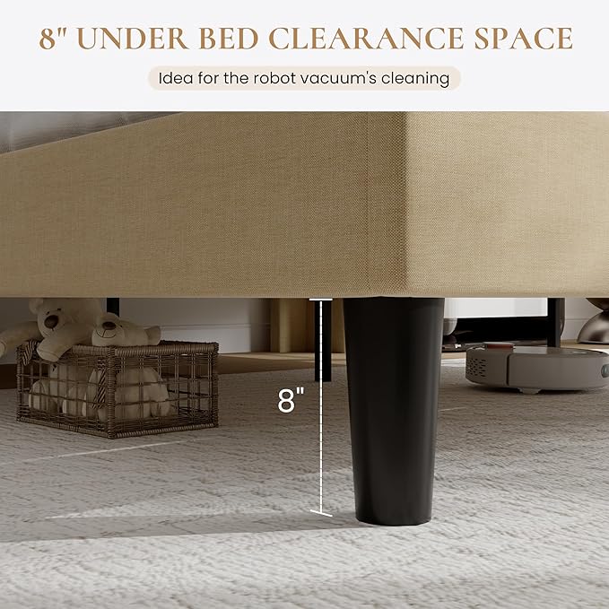 - Zero Noise Design: Velcro and EVA strips eliminate slat friction, stopping squeaks. The bed frame king size keeps your mattress from slipping, ensuring a quiet, undisturbed night.