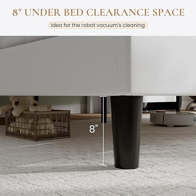 - Sturdy Support: The reinforced full size bed frame includes a central "+" metal support and 12 wooden slats, providing excellent durability with a weight capacity of up to 800 lbs. The legs feature padded feet for added stability and floor protection
