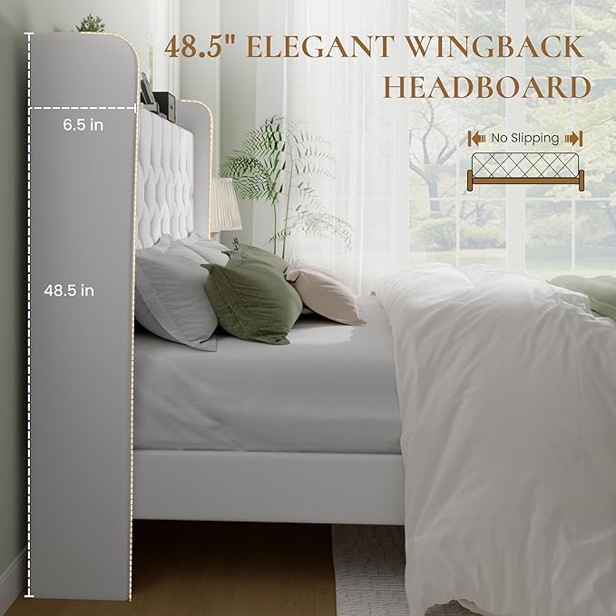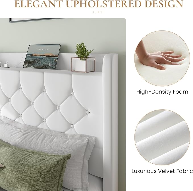 - Multifunctional practical shelf: The full size bed frame with headboard includes a storage shelf for phones, iPads, clocks, and glasses. The headboard is filled with high-density foam, providing a soft and supportive backrest for ultimate relaxation