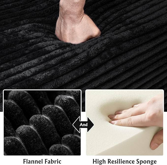 3-Piece Boneless Modular Sectional Sofa, Cloud Couch, Left Facing Chaise with Ottoman, Oversized Deep Seat, Soft Corduroy Fabric, Sectional Couch for Living Room-Black