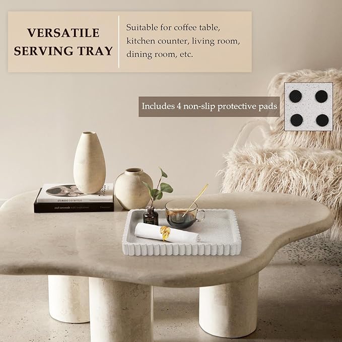 - Decorative Tray Dimensions: Modern decor tray for coffee table decor measures 14"(L) x10"(W) x 1.5"(H). Perfect serves as coffee table centerpieces, serving tray for breakfast in bed, ottoman tray for living room. Its minimalist and modern seamlessly complements any home decor style.