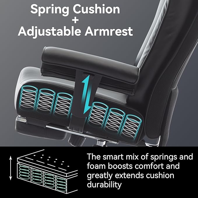 - 4. Durable and Safe Executive Office Chair This office chair is BIFMA certified with an SGS-tested level 3 gas cylinder, built on a strong metal base with smooth-rolling casters. Designed to support up to 450 lbs, this big and tall office chair ensures long-lasting strength, safety, and stability for daily use.