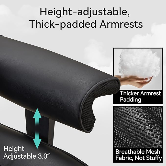 - 3. Ergonomic Desk Chair for Long Hours Stay comfortable all day with this ergonomic office chair. Easily adjust the seat height, tilt tension, and armrests to fit your needs. The reclining back tilts from 90° to 135°, and the retractable footrest adds extra relaxation. Whether as a computer chair, gaming chair, or home office chair, this high-back office chair keeps you supported.