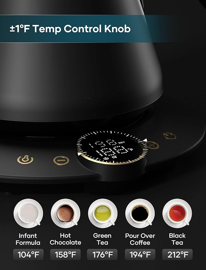 - ±1℉ Precise Temperature Control – Smart power adjustment keeps water within ±1℉ of your target, so every brew is café-precise and full of flavor.