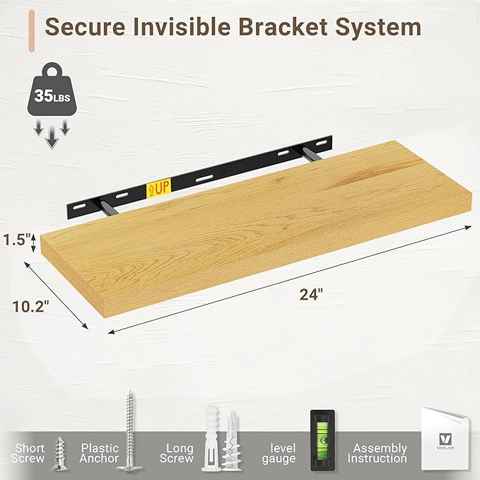 - 【Premium MDF with Realistic Wood Grain】Crafted from high-quality MDF core wrapped in natural wood veneer, our floating shelves mimic authentic oak, walnut, and other wood textures—no visible seams or artificial patterns. The realistic wood finish blends seamlessly with modern, farmhouse, or minimalist styles.