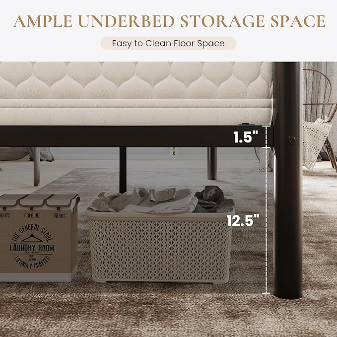 - Ample Under Bed Storage: Maximize your under-bed space with 12.5 inches of clearance for storing bins, shoes, or extra linens, helping keep your bedroom neat and organized without sacrificing style