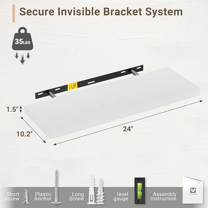 - 【Invisible Bracket for Clean Look】The hidden bracket system creates a seamless “floating” effect—no visible hardware! just clean lines that make your bedroom photos, laundry room essentials, or bathroom displays the star of any room.