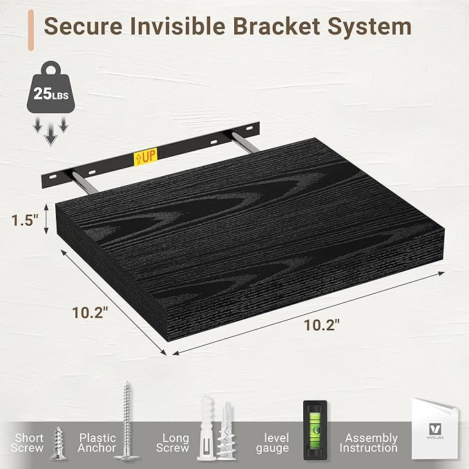 - 【Invisible Bracket for Clean Look】The hidden bracket system creates a seamless “floating” effect—no visible hardware! just clean lines that make your bedroom photos, laundry room essentials, or bathroom displays the star of any room.