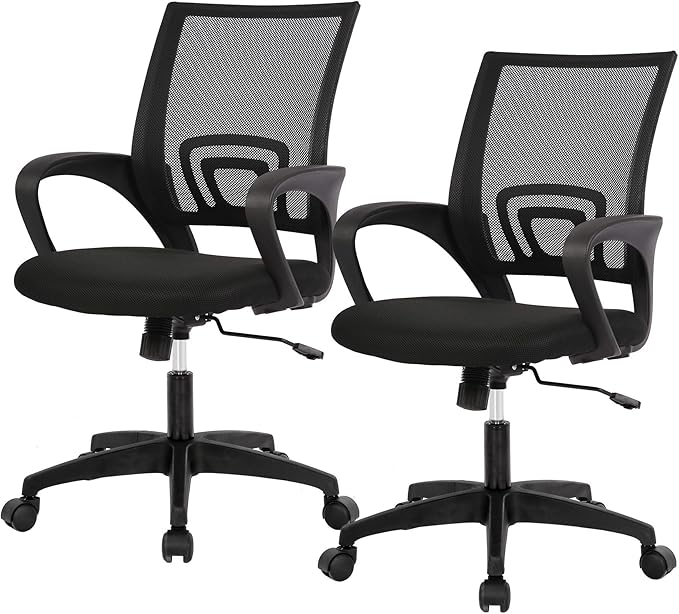 BestOffice | Ergonomic Office Chair | Mid-Back Swivel Desk Chair | Breathable Backrest & Lumbar Support | Adjustable Height | Sponge Seat | Rolling Wheels | Dark Black | for Adults & Women