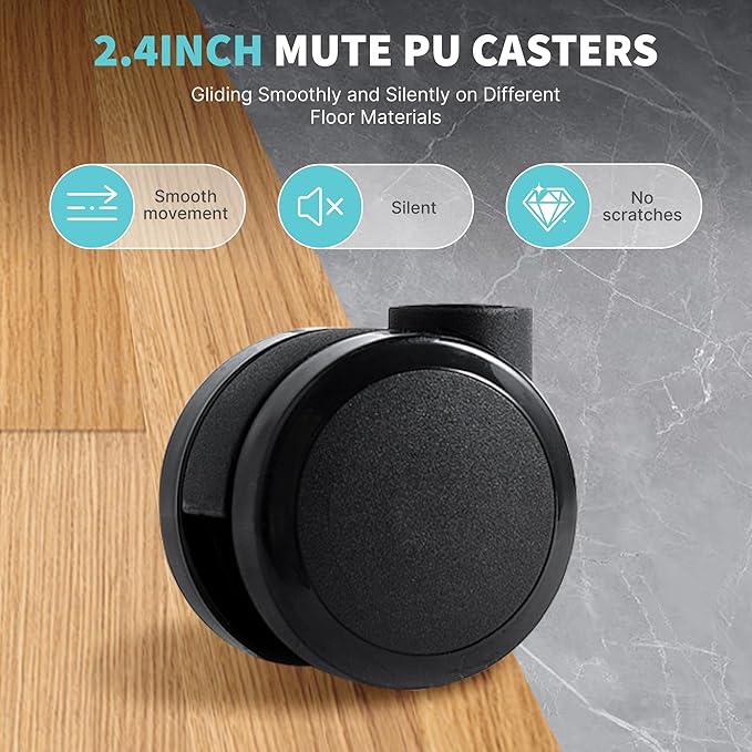 - Smooth & Quiet Mobility – 2.4" silent PU casters roll effortlessly on any floor surface without scratching or making noise.