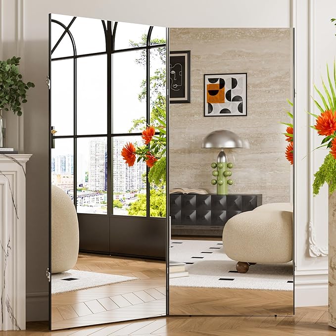 - 【Extra-Large Yet Foldable】71"x47" oversized mirror folds to 1/3 thickness for compact storage, ideal for small spaces in homes, gyms, or studios.