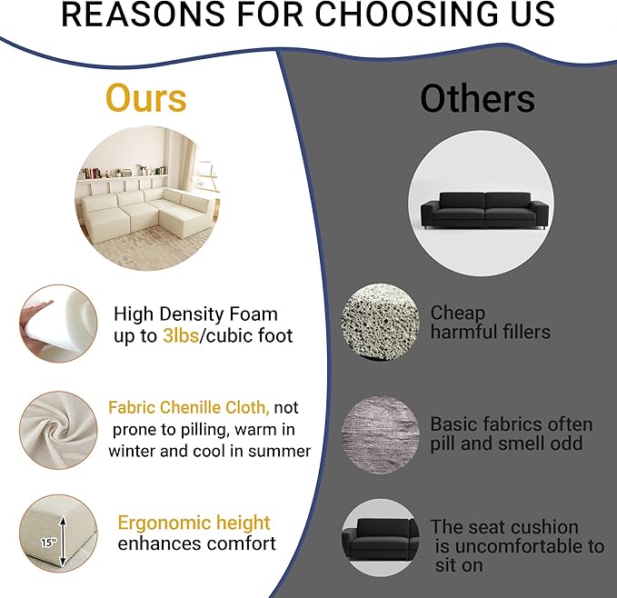 - Modular Flexibility: Armless, Conner, Ottoman, base unit enables free assembly into straight/L-shaped/U-shaped layouts. Pair with additional modules (sold separately) for custom configurations.(Spot clean recommended).
