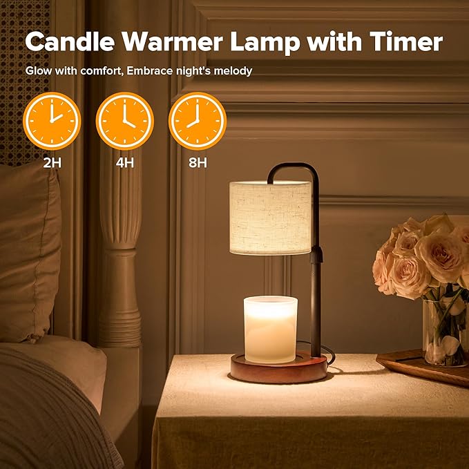 Candle Warmer Lamp with Timer, Dimmable Wax Warmer Candle Lamp for Jar Candle with 2 Bulbs, Christmas Birthday Gifts for Women Mom, Home Decor for Room, Bedroom, Kitchen-Linen Fabric