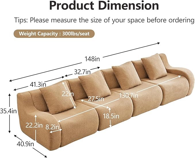 - Product Dimensions : 40.9"D x 148"W x 35.4"H