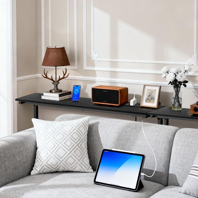 - 【Quick Assembly & Support】This sofa table with outlet is a breeze to assemble, coming with clear instructions, simple construction, and all tools included—15 minutes to set up! For extra stability, attach it to the wall and use adjustable feet for uneven floors. Plus, 24/7 customer service is here to help anytime