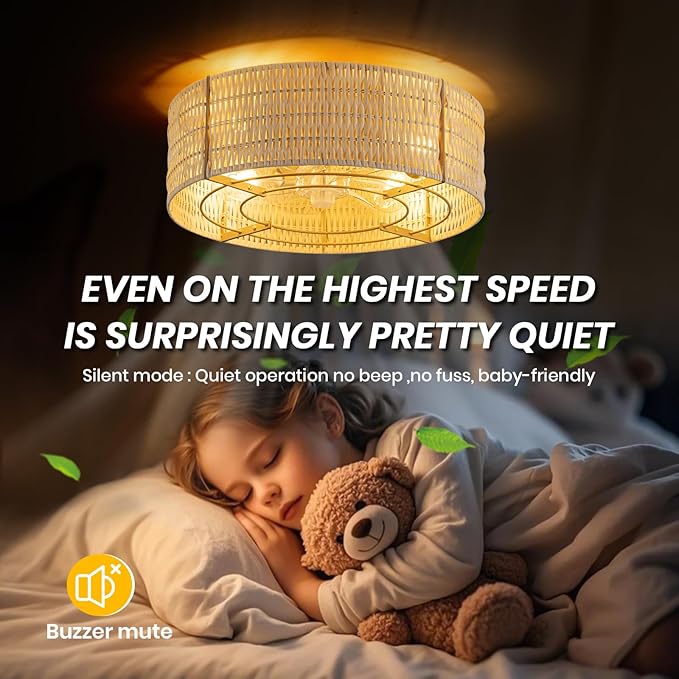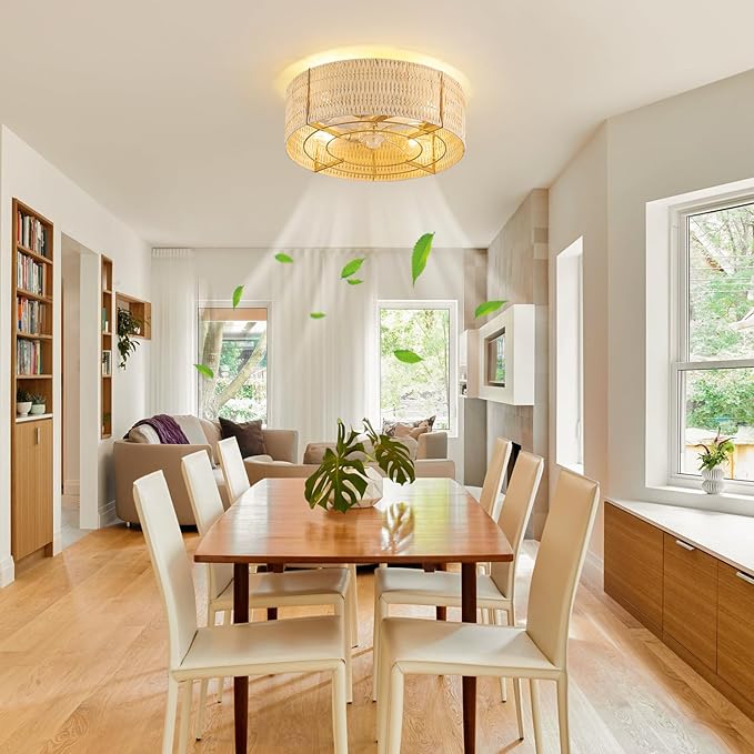 - Artisanal Handwoven Rattan Design:Immerse your space in authentic bohemian charm with our handwoven rattan ceiling fan. Each shade is meticulously crafted by skilled artisans, a process taking over three hours to complete, ensuring every piece is a unique work of art. The natural, eco-friendly rattan brings a touch of organic elegance and a subtle, pleasant grassy scent to your home.
