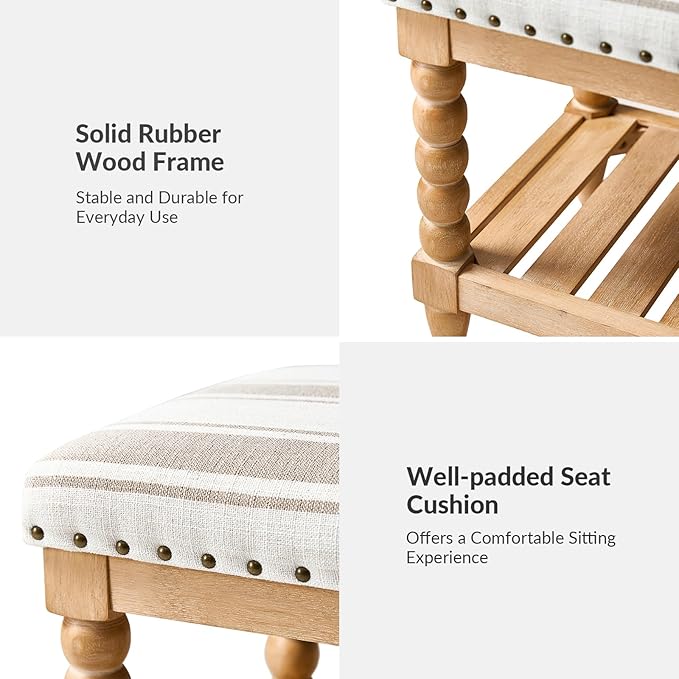 - Farmhouse Style Design: This bench features a rustic and charming farmhouse aesthetic. Its timeless design brings warmth and character to any space, such as an entryway, living room, or bedroom