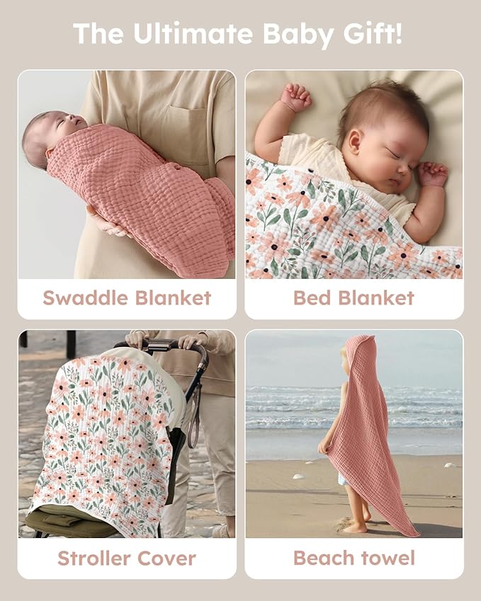 - [Excellent Durability] - The 6 layers thickness muslin design is long-lasting enough for everyday use. Sized in 32 x 32 inches, the hooded baby towels are suitable for newborns, infants, toddlers, and small kids up to 3 years old.