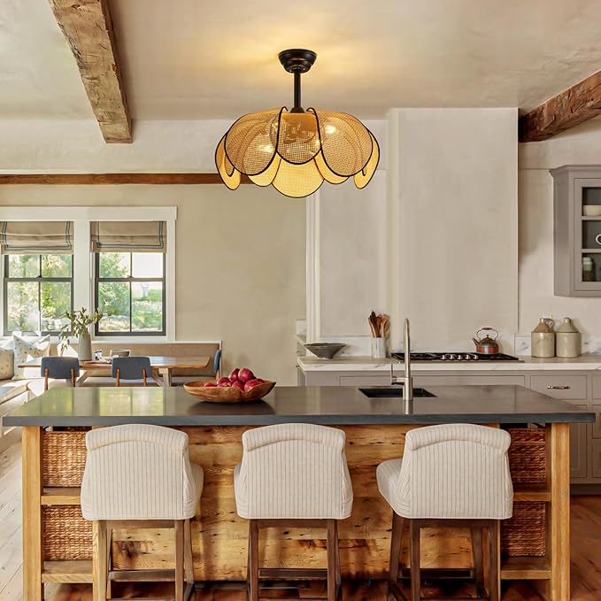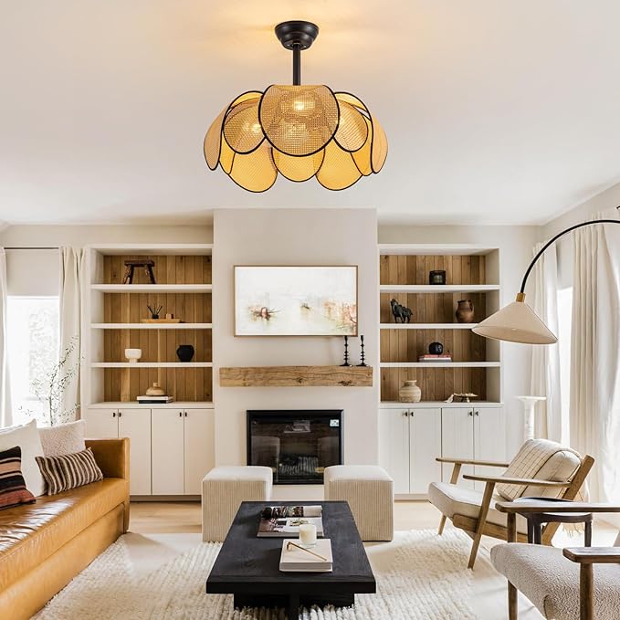- 【Smart Timer Function】Featuring a 1H/2H/4H timer function, this rattan fandelier ceiling fan automatically shuts off at your set time — saving energy and ensuring a restful, undisturbed sleep. Perfect for bedrooms, living rooms, nurseries, and other indoor spaces, this flush mount ceiling fan combines functionality, comfort, and style in one elegant design.