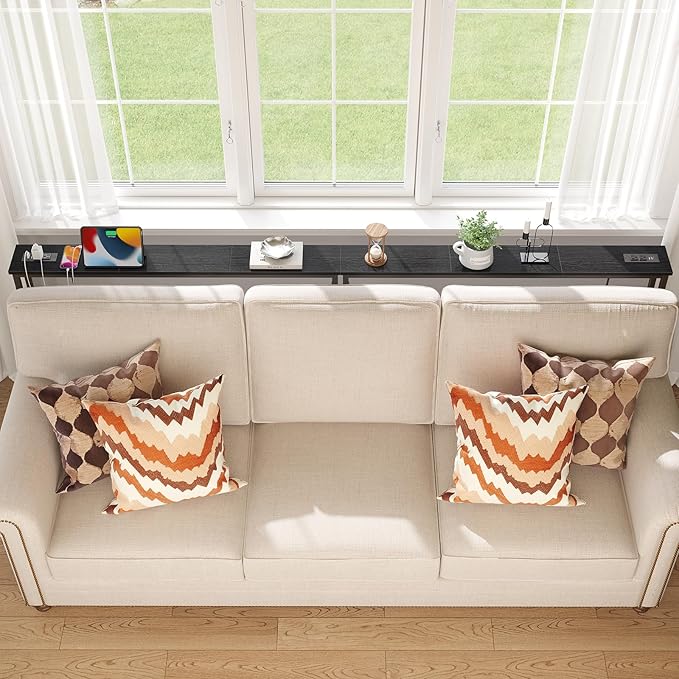 ELYKEN 94.5" Narrow Console Sofa Table with Power Outlet, 5.9'' Behind Couch Table with Charging Station, Long Entryway Tables for Living Room, Hallway, Black