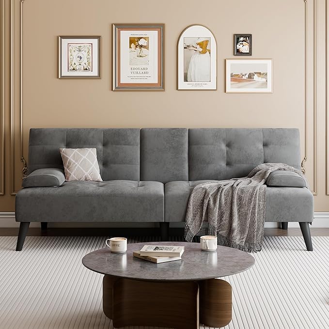 - [Comfortable Futon] This convertible sofa bed is made of high-quality velvet and filled with high-quality sponge, featuring a sturdy wooden frame. Our sofa bed emphasizes not only a comfortable experience but also durability, ensuring it can be used for many years. Please note that the length of the sofa is 64 inches