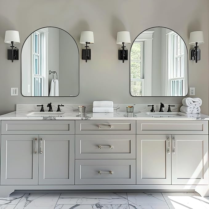 - Clear Reflection: Equipped with a 4mm ultra-clear glass surface, this arched mirror provides distortion-free reflections that make your grooming routine effortless; enjoy bright, crisp images that ensure you look polished at all times